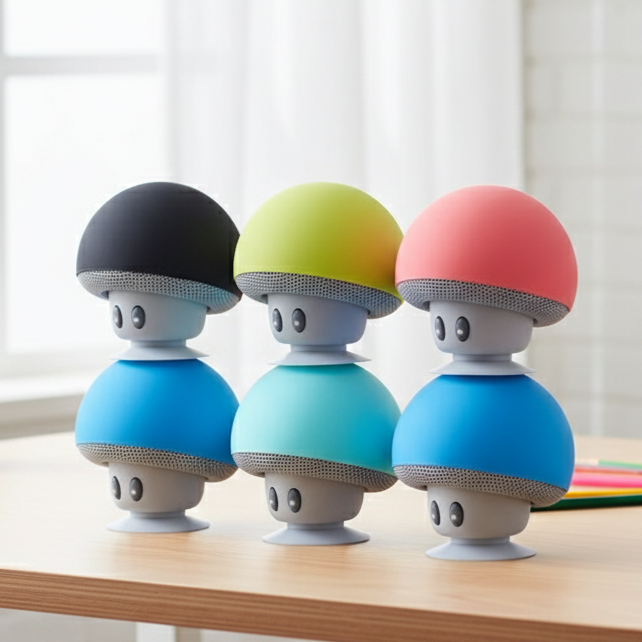 🔊 Mini bocina con diseño de champiñón adorable.