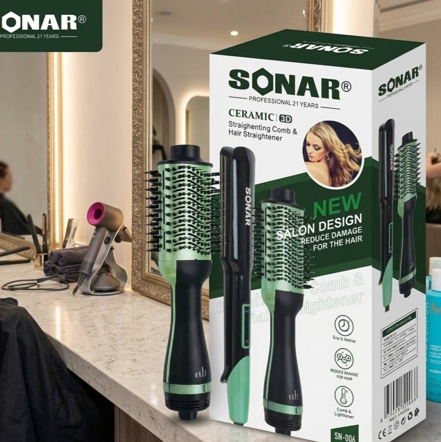 📦 Set completo: Incluye cepillo secador + plancha marca Sonar.