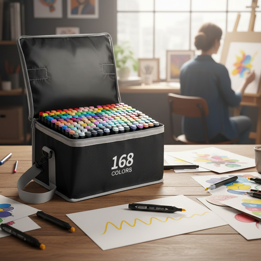 ¡Desata tu creatividad sin límites! El Set de Marcadores Touch de 168 piezas es ideal para artistas, estudiantes y creativos que buscan máxima variedad de color, precisión y resultados profesionales.